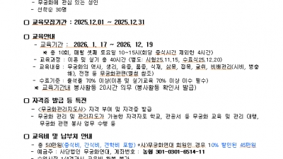 무궁화관리지도사 제6기를 아래와 같은 요강으로 모집합니다 나라꽃 무궁화에 관심이 많으신 분에 응모와 성원을 부탁드립니다.2026.01.09 mynews24